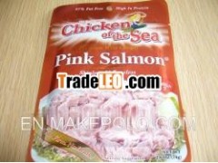 Description: Salmon in pouch: 1. Premium pink salmon; 2. Skinless & bo neless meat; 3. Pouch packing. Canned PinkSalmon Species: - Pink salmon